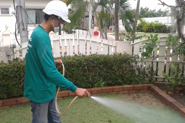 ฉีดพ่นน้ำยาภายนอกรอบบ้าน สนามหญ้า โคนต้นไม้